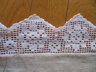 ...e com uma agulha de costura e linha fina, costurei a renda ao linho com um ponto invisível.