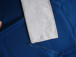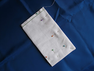 Depois desta primeira costura, vira-se novamente para o lado do avesso, e faz-me outra costura identica à primeira